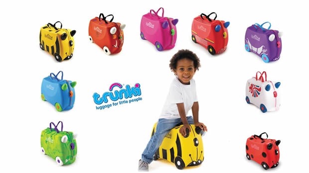 L’enfant s’amuse en roulant sur sa valise, et s’il fatigue, une sangle permet de le tirer…