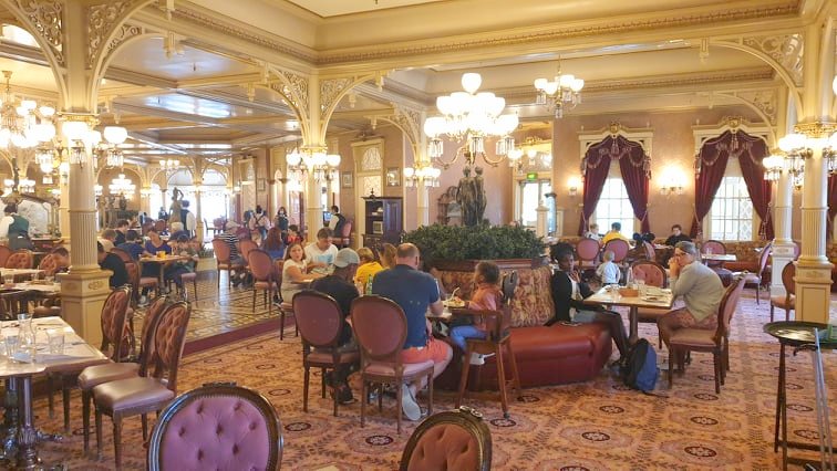 L’ambiance du restaurant est chic. Hormis les morceaux de chocolat sur les mini-gâteaux, rien ici dans la décoration ne rappelle Disney. Cela permet de « couper » la journée en s’installant tranquillement à l’une des nombreuses tables du restaurant. Attention, il est fortement conseillé de réserver quelques semaines à l’avance. Sans réservation, vous risquez de devoir attendre de looooongues minutes à la porte avant que l’on vous trouve une table.