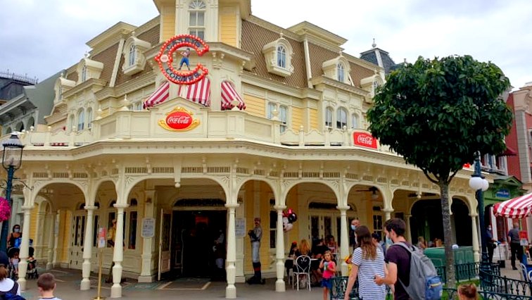 Comme son nom en anglais l’indique, Casey’s Corner est situé à l’angle de Main Street USA. Il est divisé en 2 salles: la première où se trouvent les caisses pour prendre les commandes, la seconde où l’on trouve quelques tables. Heureusement, plusieurs places sont également disponibles en terrasse extérieure, et dans Liberty Arcade. Ici, la spécialité, c’est le hot-dog, généreux, savoureux… et à 9€ minimum (tarifs 2021)