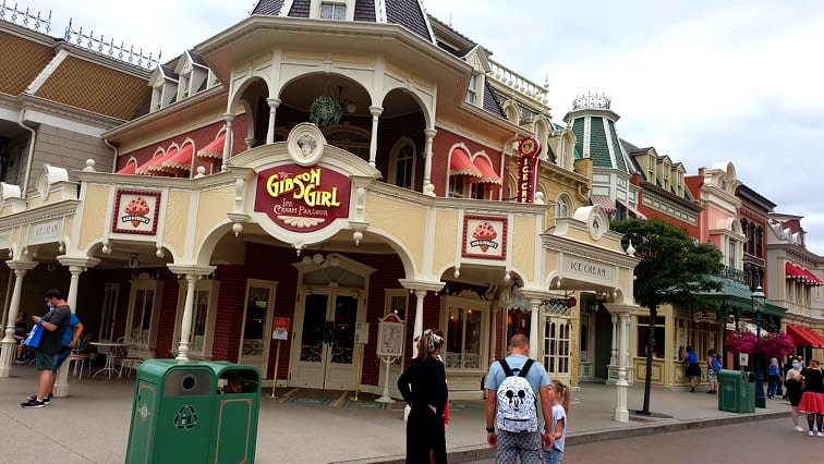 Situé à l’angle de Main Street USA, The Gibson Girl Ice Cream Parlour est un lieu idéal pour faire une pause au cours de sa journée dans le parc Disneyland. On y trouve des donuts, des muffins, mais aussi – et surtout – de la crème glacée Ben & Jerry’s. Cookie Dough, Chocolate Fudge Brownie, Strawberry Cheesecake ou bien encore Peanut Butter Cup font partie des parfums de glace servis dans ce point de vente qui vous emmène dans l’ambiance des salons du début du XXe siècle.