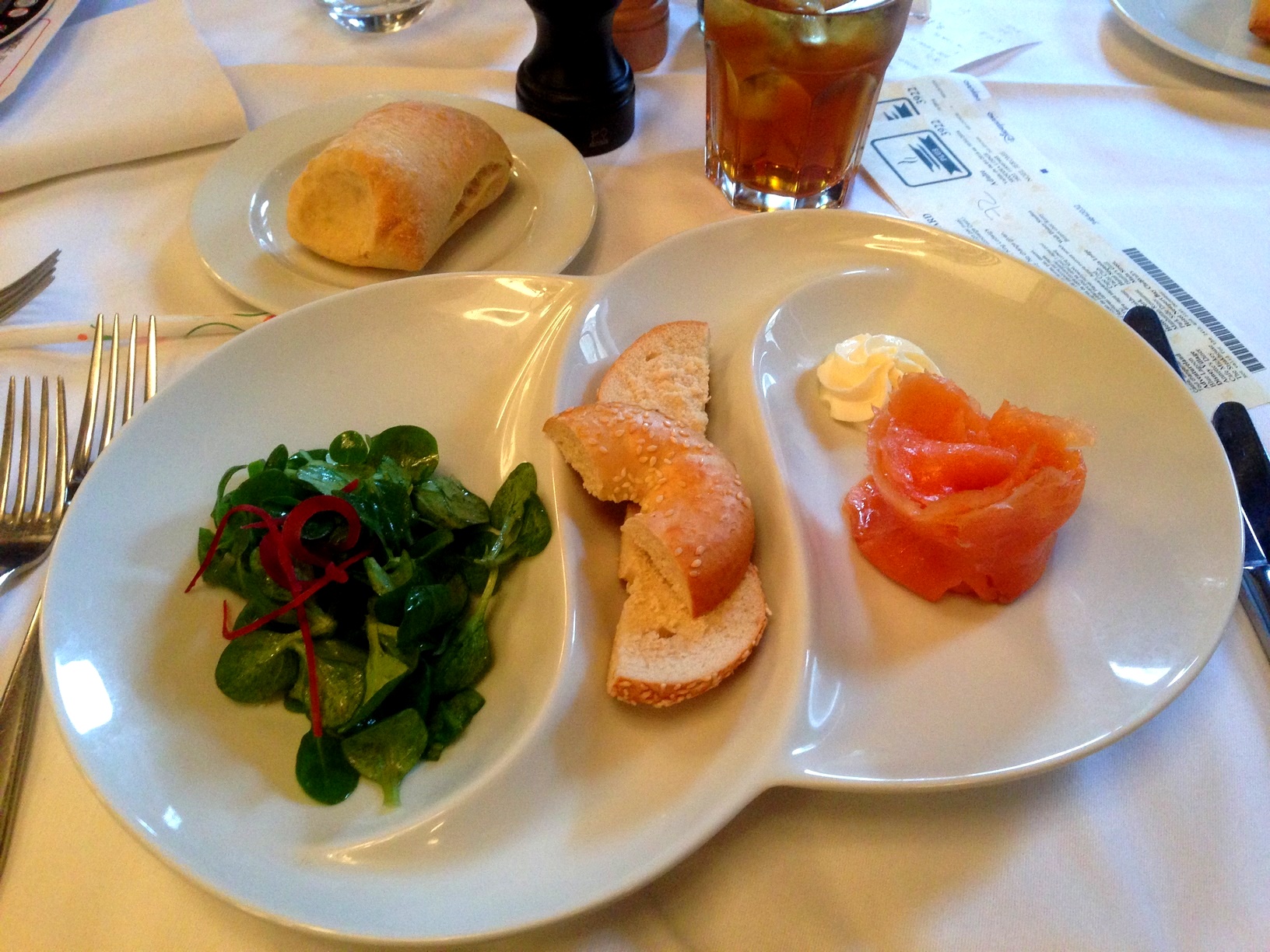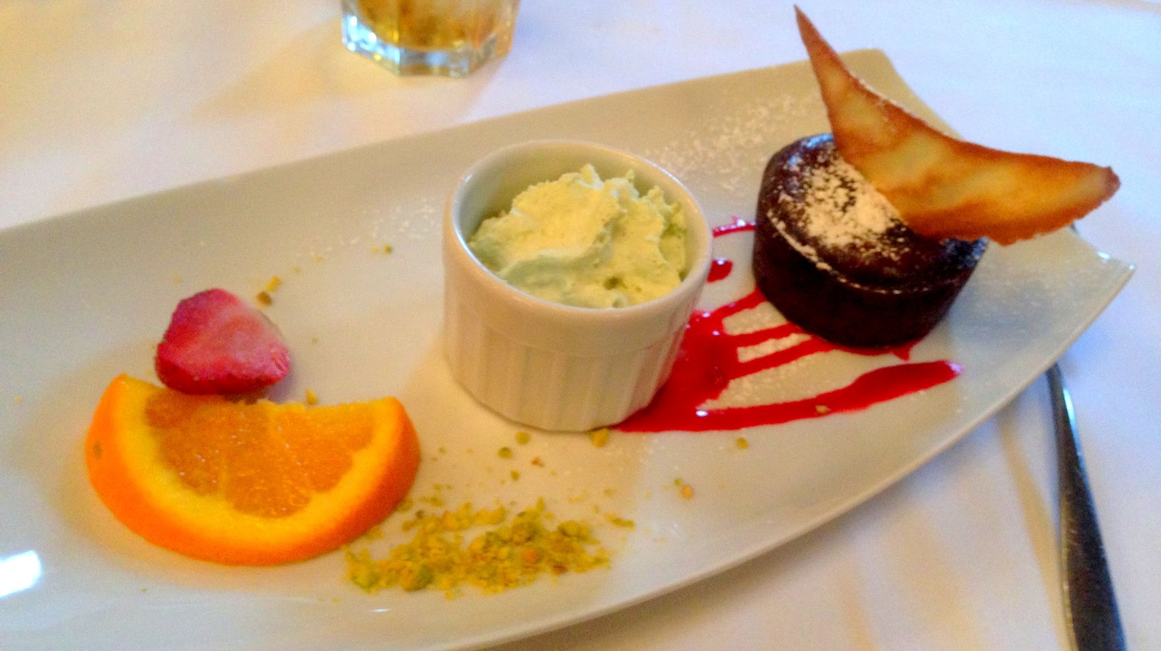 La dernière fois que nous avons mangé au Walt’s, c’était en janvier 2016. Depuis, la carte a changé, et il me tarde de la découvrir, tant les nouveaux plats proposés ont l’air délicieux et la présentation dans l’assiette beaucoup plus délicate. Hélas, le prix a augmenté en conséquence (menus entre 40,99 et 61,99€ – Tarifs 2019). Reste à voir si le rapport qualité/prix est bel et bien présent… En attendant, je me contenterai donc de donner un avis sur l’expérience que j’ai vécue. Niveau ambiance, même si j’ai trouvé la salle Fantasyland assez sombre, il faut avouer que l’atmosphère est calme… et ça fait du bien de s’y reposer avant de reprendre la journée d’attractions. Côté repas, je m’attendais à une présentation plus soignée, mais j’ai quand même été satisfait par le menu. Les produits, comme le saumon fumé en entrée, étaient de bonne qualité. Mention spéciale pour le fondant au chocolat en dessert: un régal ! En résumé, il faut bien le dire, le Walt’s, an American Restaurant représente un certain budget. Je ne le conseillerai pas forcément pour un premier voyage à Disneyland Paris, mais si après plusieurs visites vous avez envie de vivre une expérience différente, de prendre le temps de souffler, de vous asseoir à table dans un cadre élégant sans sortir du parc, alors il s’agit du lieu idéal. Pour beaucoup de visiteurs, une journée à Disneyland Paris s’apparente à une course aux attractions. Mais croyez-moi: prendre le temps de flâner, de retourner à l’hôtel pour se détendre dans la piscine, s’offrir des bons restaurants, c’est une expérience totalement différente qui vous feront redécouvrir la destination autrement. Ce sont des vacances après tout ! Et rien que pour ça, ça peut valoir le coup d’économiser pour s’offrir ce petit plaisir… A noter tout de même: si vous avez des enfants turbulents, passez votre chemin. Le Walt’s, an American Restaurant, n’est pas vraiment une salle de jeux, mais bel et bien un endroit calme et raffiné à la cuisine gastronomique.