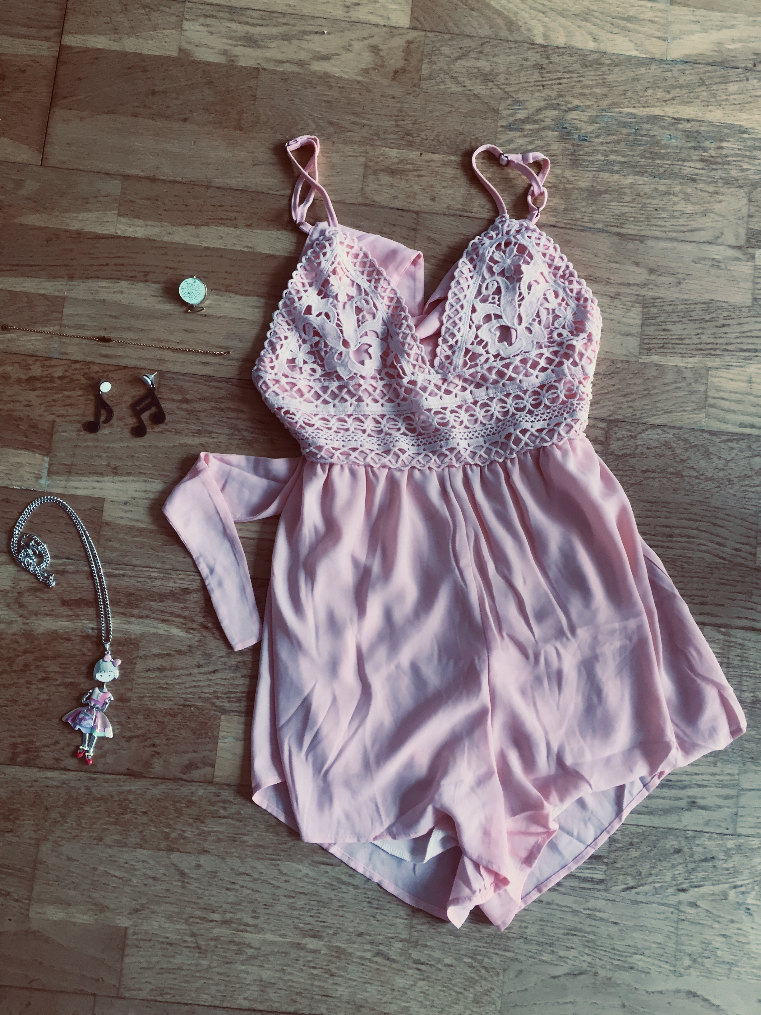 Du coup, le look se compose d’une combinaison saumon, que j’ai trouvé sur le site de Shein.