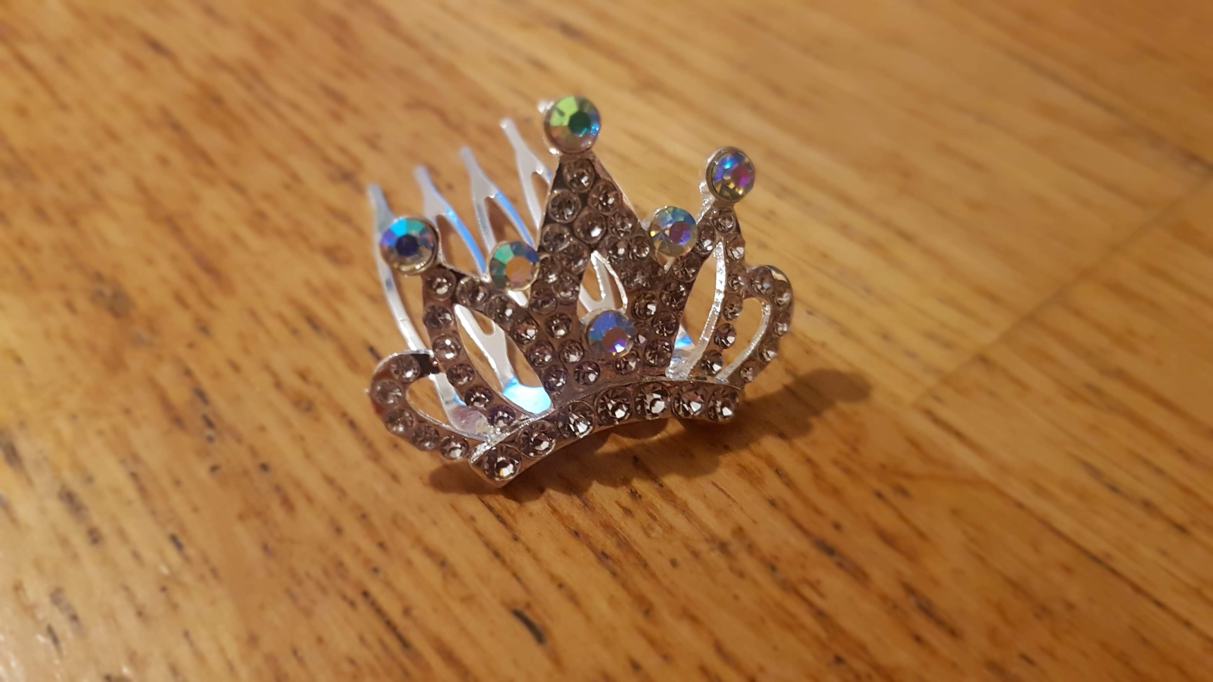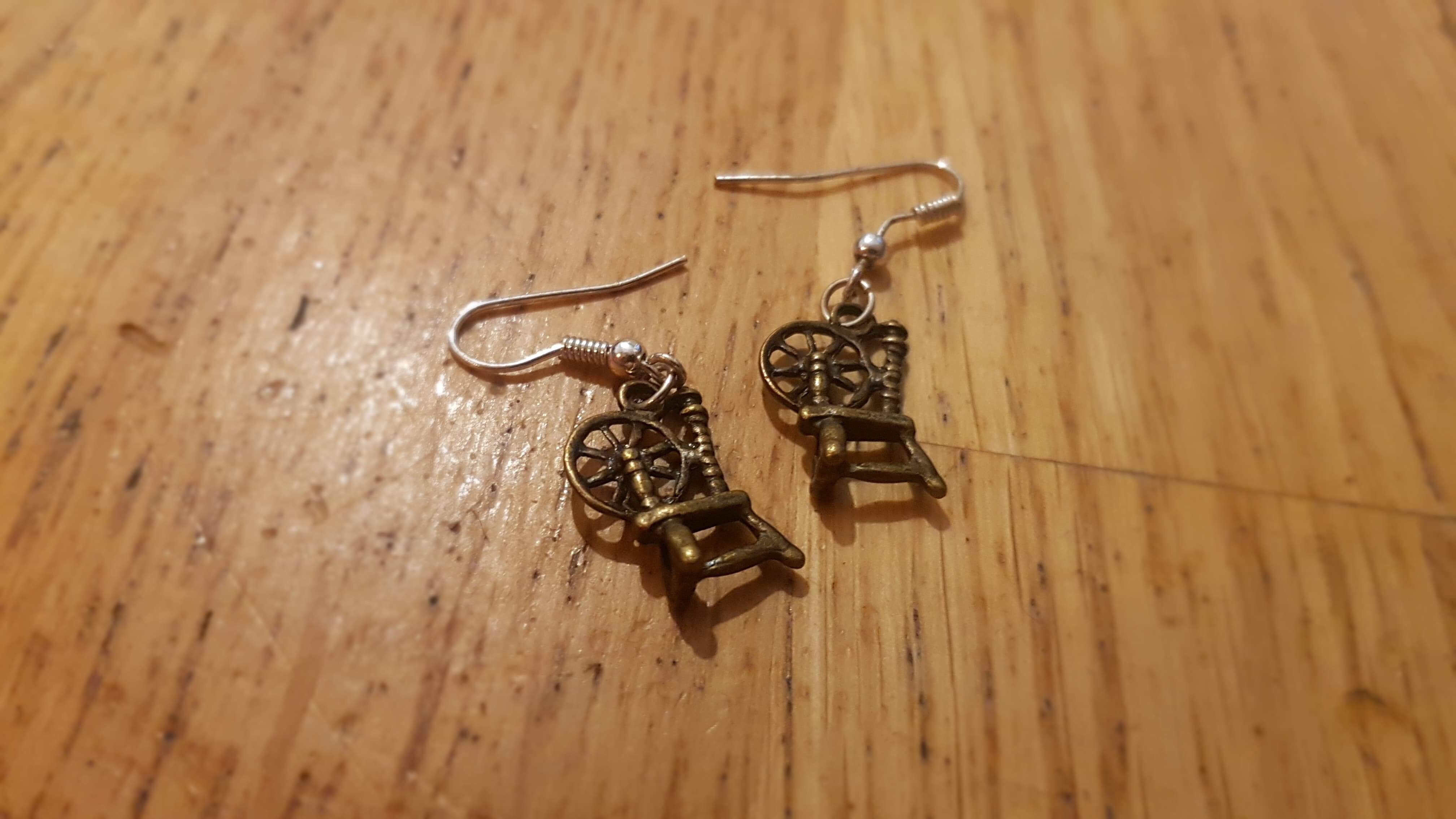 Pour les accessoires, une petite tiare, des boucles d’oreille que j’ai réalisées moi-même avec des petits rouets trouvés sur AliExpress, et trois bracelets rappelant les fées.