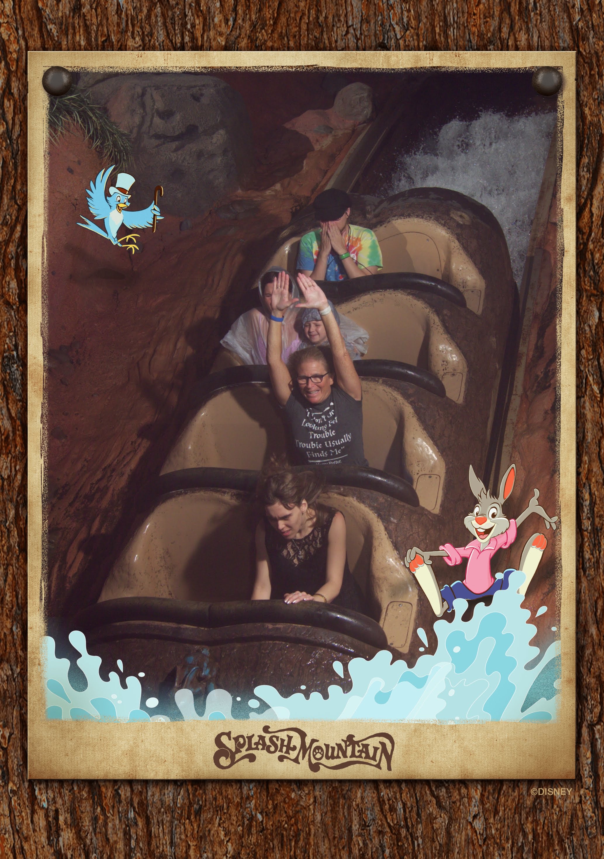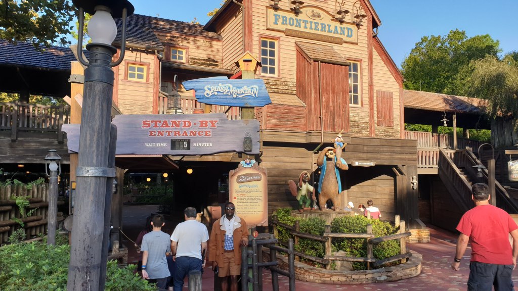 Mais ici, la mélodie est entrecoupée par des cris stridents. Et pour cause: embarqués dans un tronc d’arbre creusé, le ride nous fait dévaler plusieurs fois la montagne… et ça mouille ! L’attraction est d’ailleurs sponsorisée par Ziploc, et un cast-member distribue des petits sacs étanches en plastique à l’entrée de la file d’attente pour y mettre ses affaires avant de monter dans l’attraction !