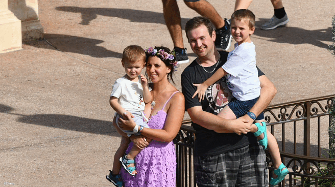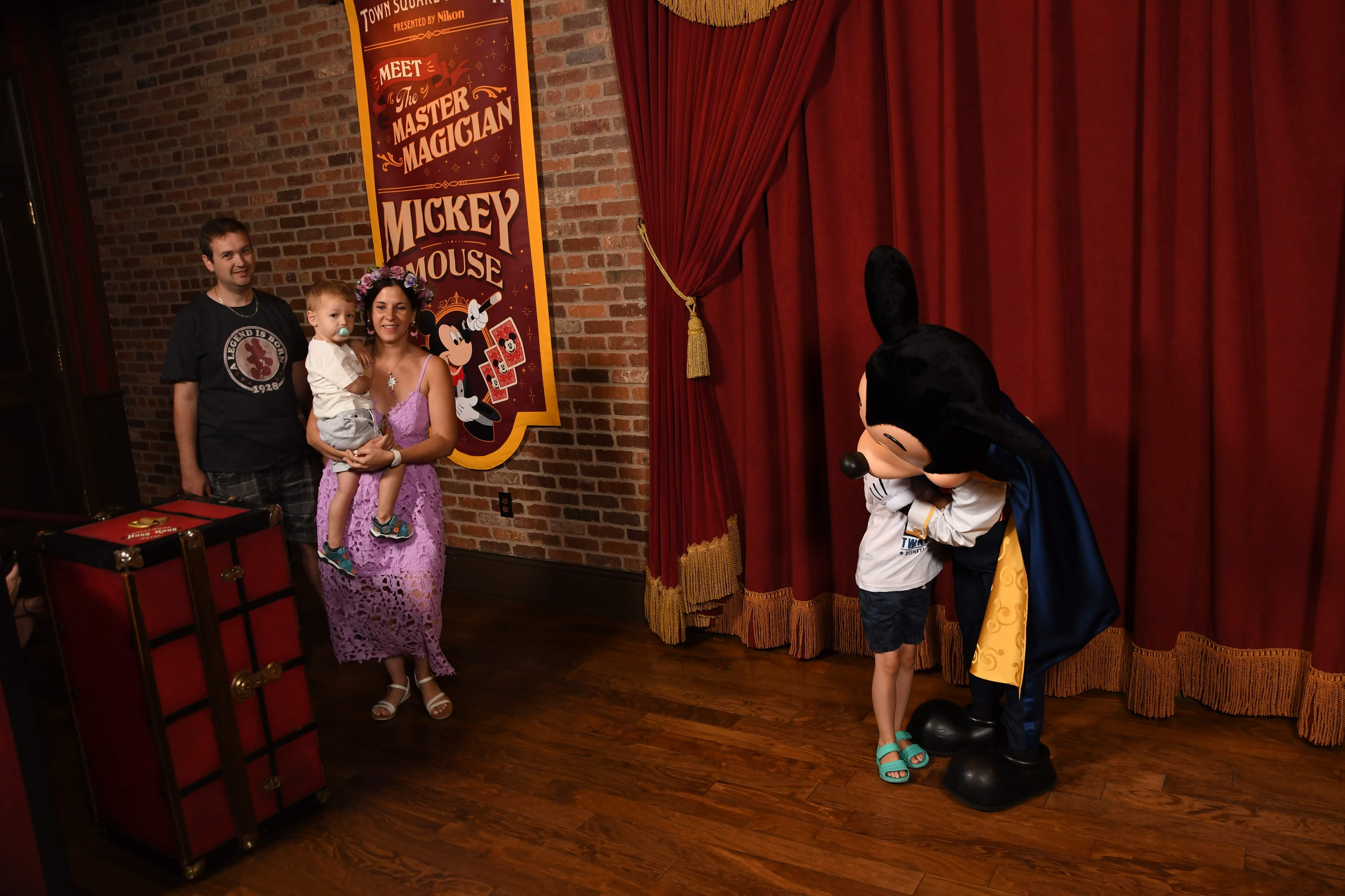 Ce qu’il y a de vraiment bien à Walt Disney World, c’est que vous croisez des photographes tous les 20 mètres. L’un d’entre eux nous intrigue… car il n’a pas d’appareil photo ! Il demande aux visiteurs de se placer dans les jardins de Central Plaza, et de regarder vers une fenêtre de Main Street USA. Nous prenons la pose, scannons notre Magicband, et en découvrant la photo quelques heures plus tard sur notre smartphone, nous sommes ébahis: il ne s’agit pas d’une photo, mais d’une courte vidéo avec un superbe effet de zoom / dézoom sur nous, puis sur le château. Splendide !