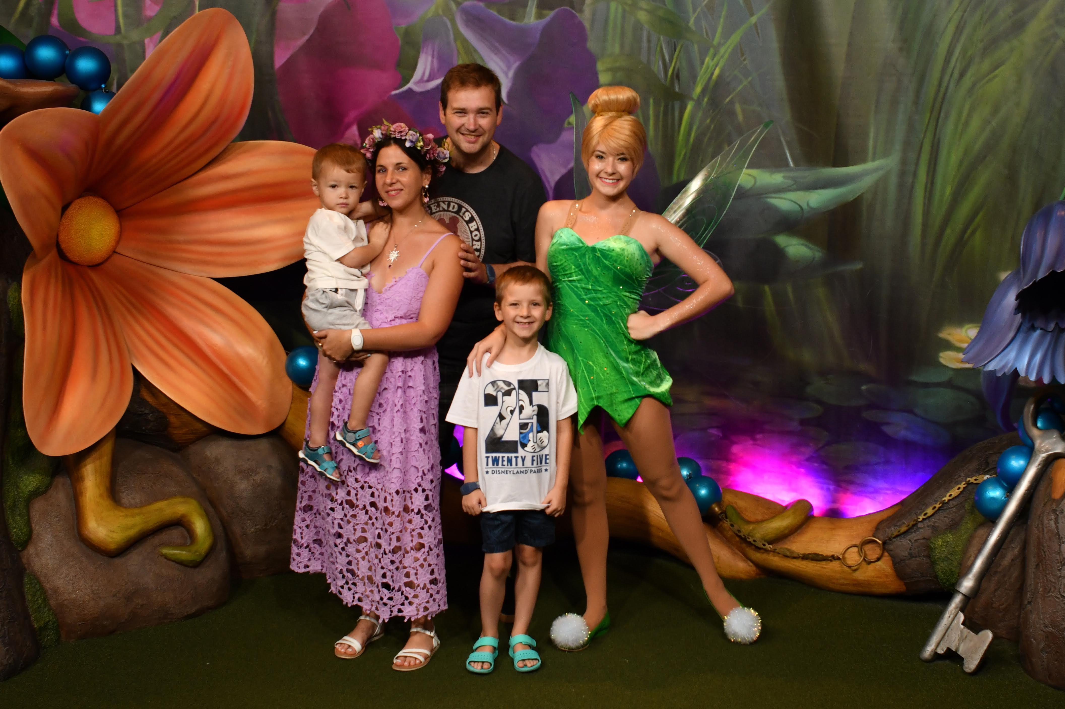 L’heure de midi approche, et nous nous rendons à l’entrée du parc où nous avons une réservation au restaurant Tony’s Town Square. Juste à côté, il est possible de rencontrer la fée Clochette, puis Mickey. Le temps d’attente est faible, et on en profite. Encore une fois, la magie Disney opère: Clochette est espiègle comme on la connaît, et très bavarde. Les enfants ne comprennent pas un mot d’anglais, mais sont conquis par le naturel du personnage. Seule déception: ici, pas de photographe, mais une machine automatique qui prend les clichés toutes les 15 à 20 secondes. Et que dire de Mickey ? C’est le boss, tout simplement. Et nous sommes toujours ravis de lui rendre visite.