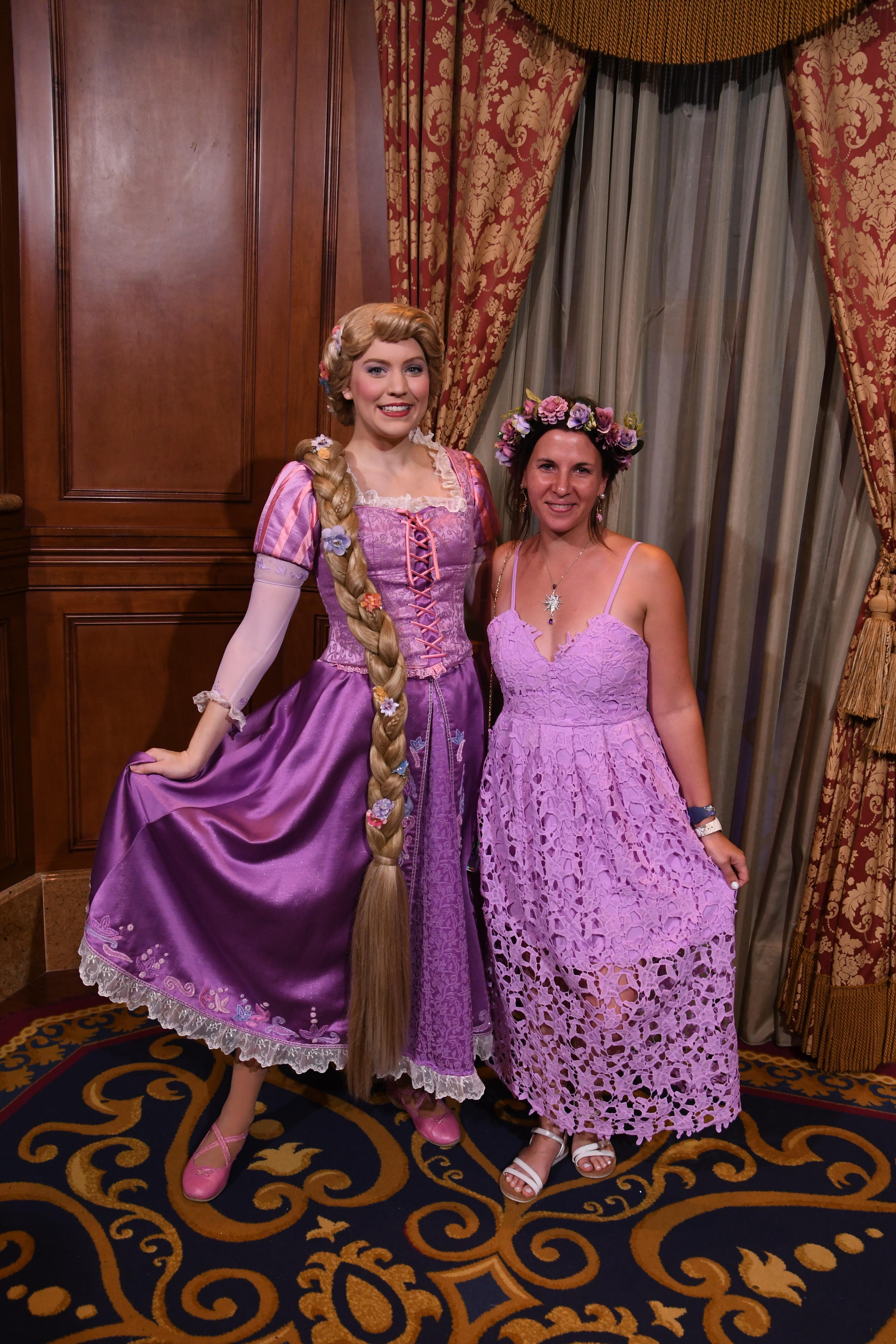 Après un passage éclair au pavillon des princesses pour une photo avec Raiponce (Amandine est en Disneybound Raiponce), nous continuons de déambuler dans Magic Kingdom.