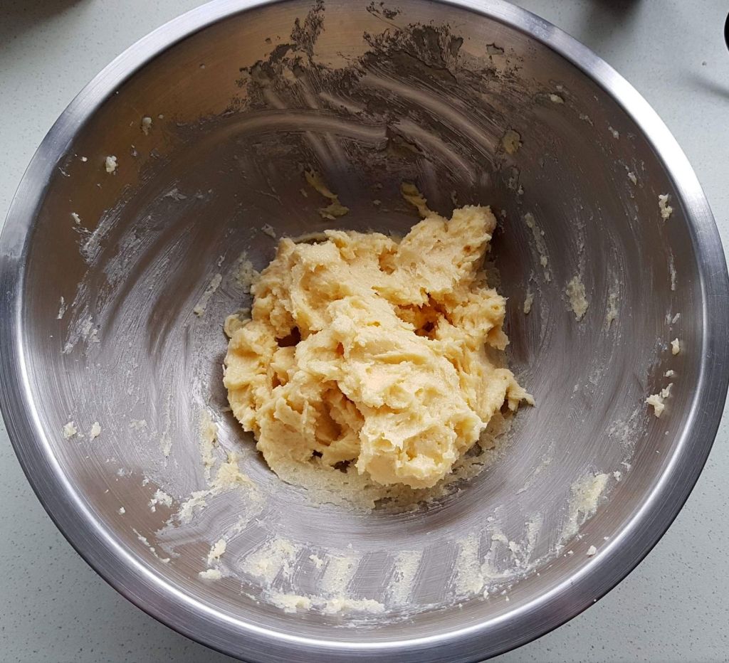 Préparez deux plateaux de cuisson recouverts de papier cuisson. Battez le beurre et le sucre ensemble, jusqu’à ce que la consistance devienne duveteuse. Ajoutez l’oeuf en plusieurs fois, et mélangez entre chaque ajout. Ajoutez l’extrait de vanille et battez le tout.