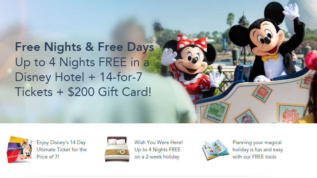 L’offre comprend jusqu’à 6 nuits offertes dans un hôtel Disney (selon la gamme d’hôtel choisie et la durée du séjour), un billet 14 jours au prix du billet 7 jours, le Memory Maker (toutes vos photos pendant la durée entière du séjour), et une carte cadeau d’une valeur de 200$ à dépenser dans les boutiques et restaurants de Walt Disney World. En revanche, le package n’offre plus le Dining Plan (plan repas), comme c’était le cas avant la crise du coronavirus.