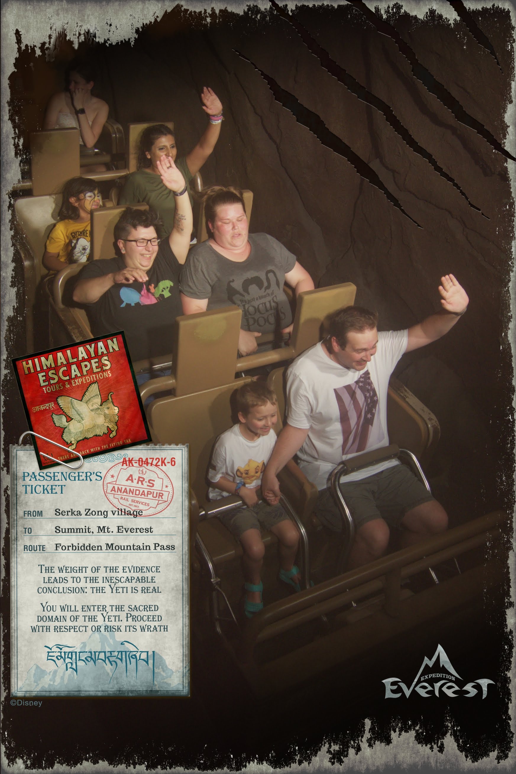 Vite, il ne nous reste plus que quelques minutes pour utiliser notre dernier Fastpass+ de la journée, et là encore, ce serait vraiment dommage de le gâcher: l’ascension de l’Everest nous attend ! Ethan, qui n’avait pas osé monter à bord du train il y a quelques jours, prend cette fois-ci son courage à deux mains, accompagné par Amandine. Malgré la vitesse de l’attraction et les sensations, il adore ! Ca tombe bien: grâce au Baby Switch, le petit veinard peut faire une seconde fois l’attraction, avec Jérôme cette fois-ci. Pour rajouter du piment, nous demanderons à être dans le wagon de tête. Et honnêtement, l’expérience est vraiment meilleure quand on est devant. Cela permet de mieux voir les dégâts causés par le yeti… On n’en dit pas plus !