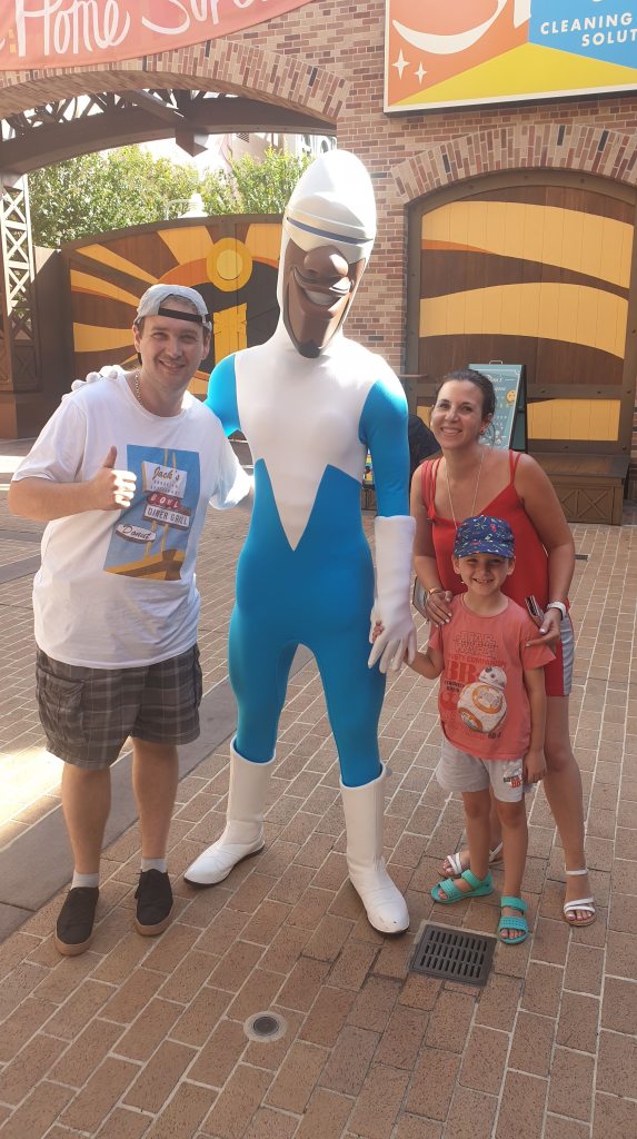 Non loin de là se trouve « The Incredible Place », une rue en cul de sac qui reproduit les décors du film « Les Indestructibles ». On y croise Frozone, qui propose alors à Ethan de faire la course ! Un moment très sympa, qui prouve encore une fois qu’à Walt Disney World, les personnages ne sont pas forcément là pour prendre la pose devant l’objectif: il y a une vraie interaction, un partage avec les visiteurs. Ethan a le sourire, et nous aussi.