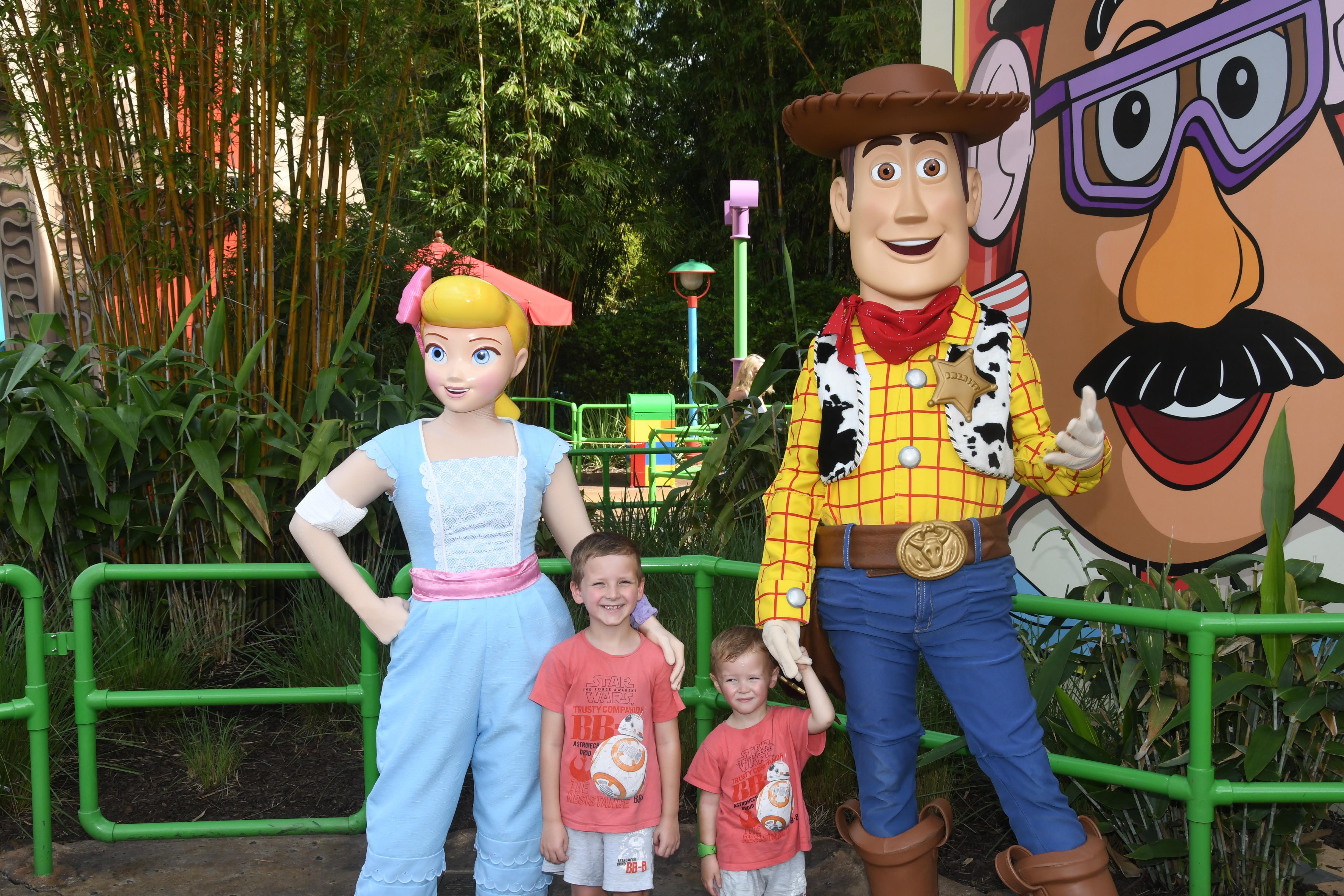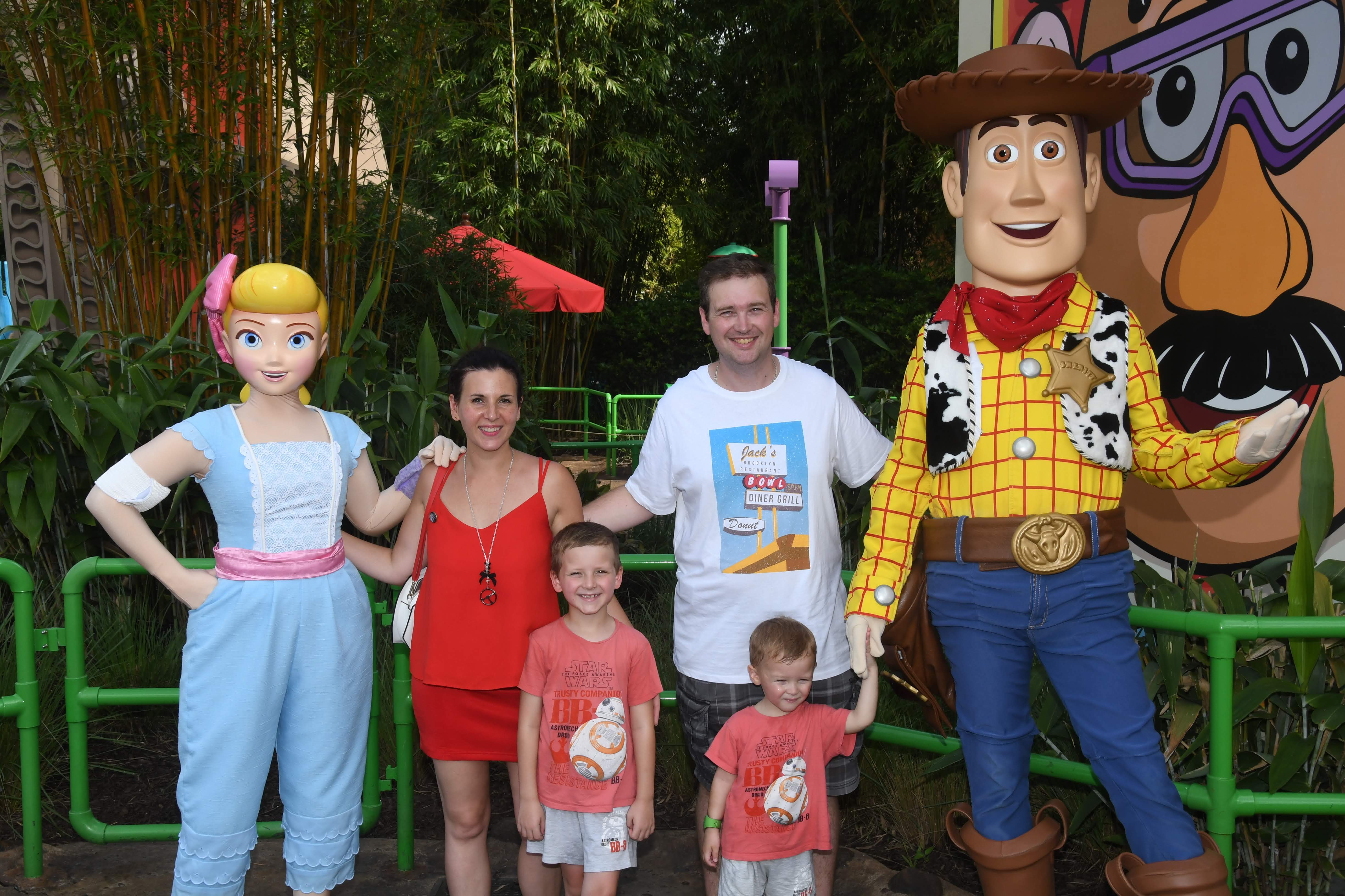 En sortant du land Star Wars: Galaxy’s Edge, on tombe directement sur le Toy Story Land. Vers 10h30, on aperçoit un point photo avec La Bergère et Woody. Il y a un peu de monde, mais on se dit que – comme d’habitude – ça devrait aller vite. Grosse erreur ! Au total, nous attendons une heure pour pouvoir faire la photo ! C’est sans aucun doute le plus gros temps d’attente que l’on ait fait depuis le début de notre séjour.