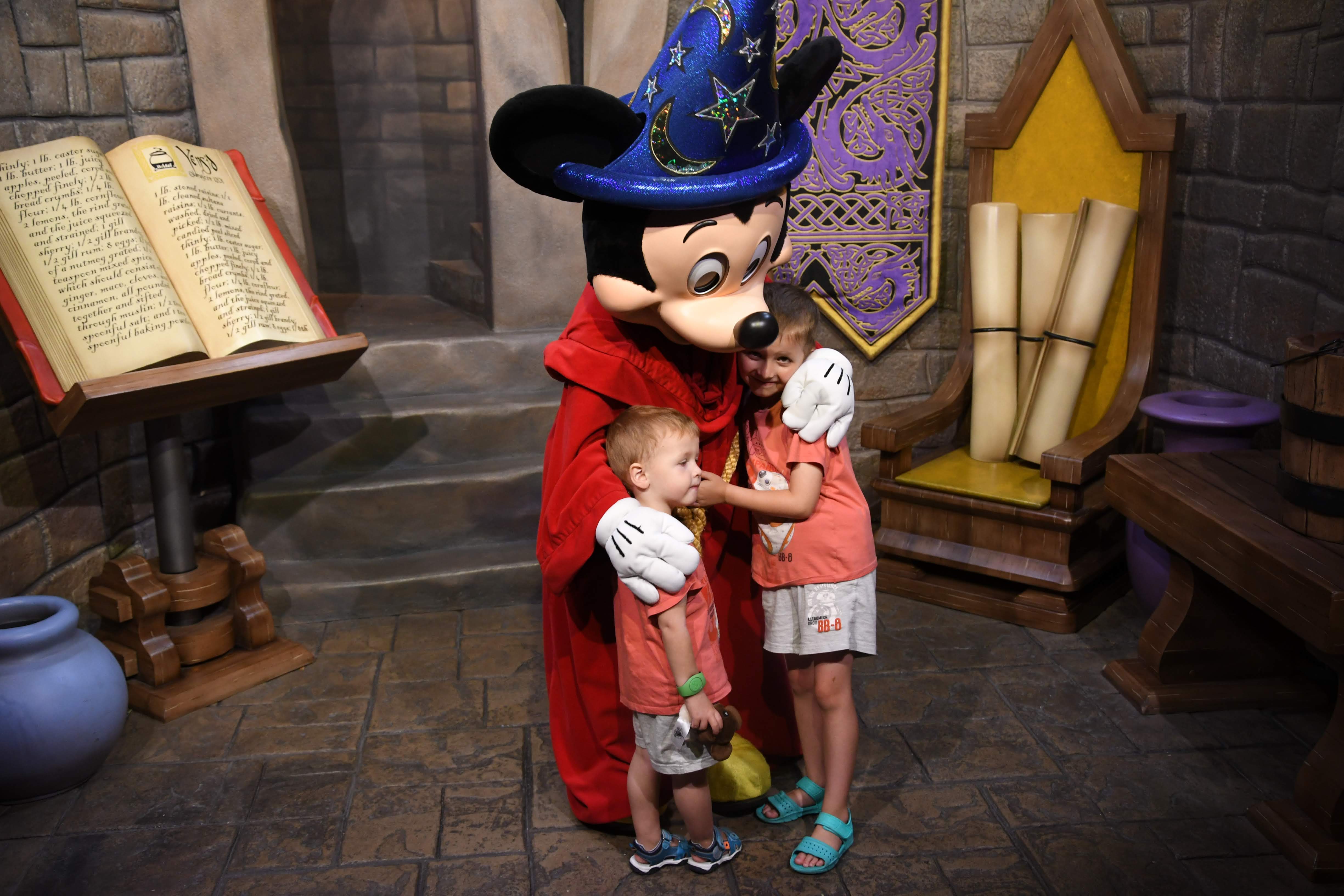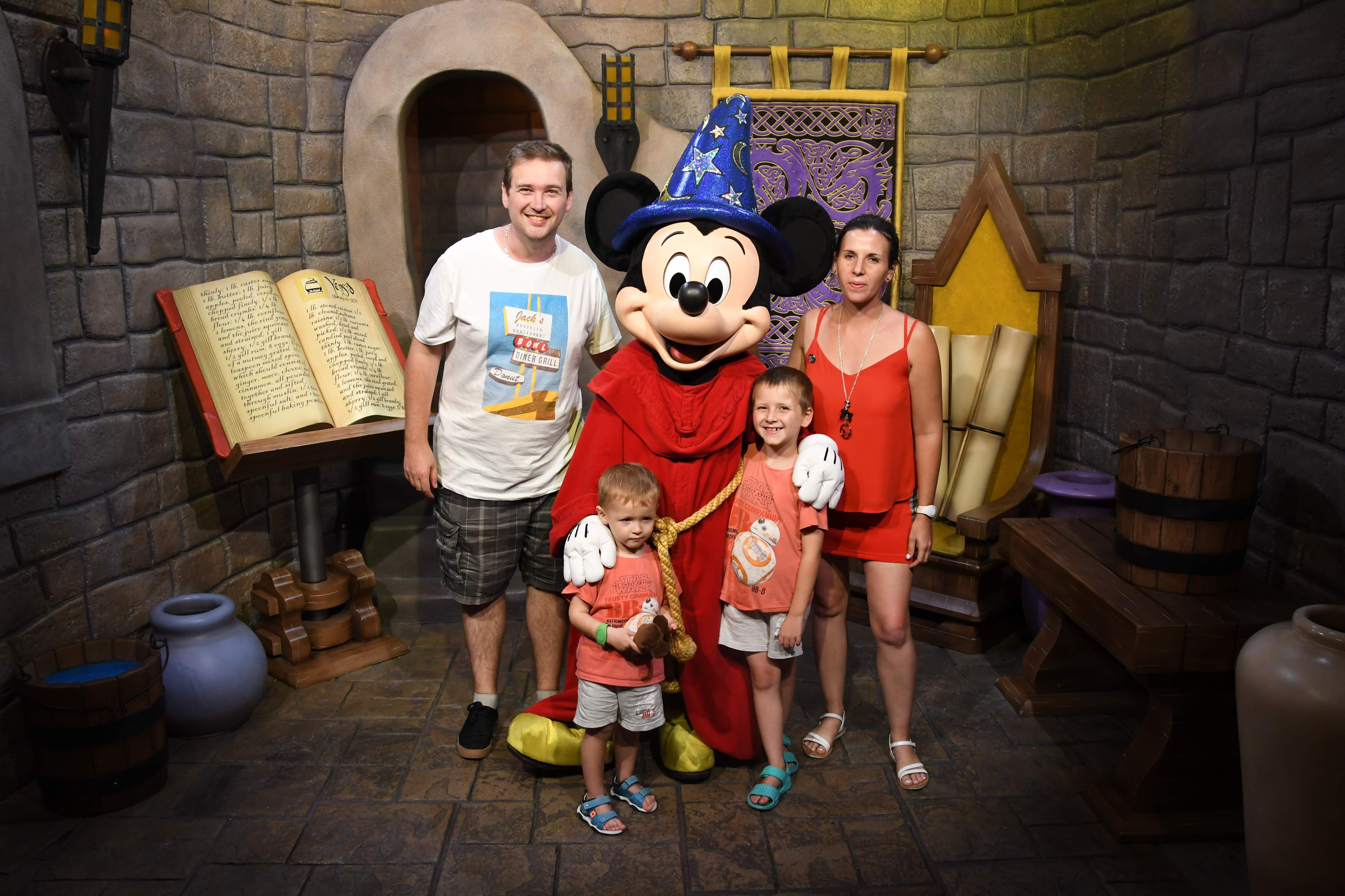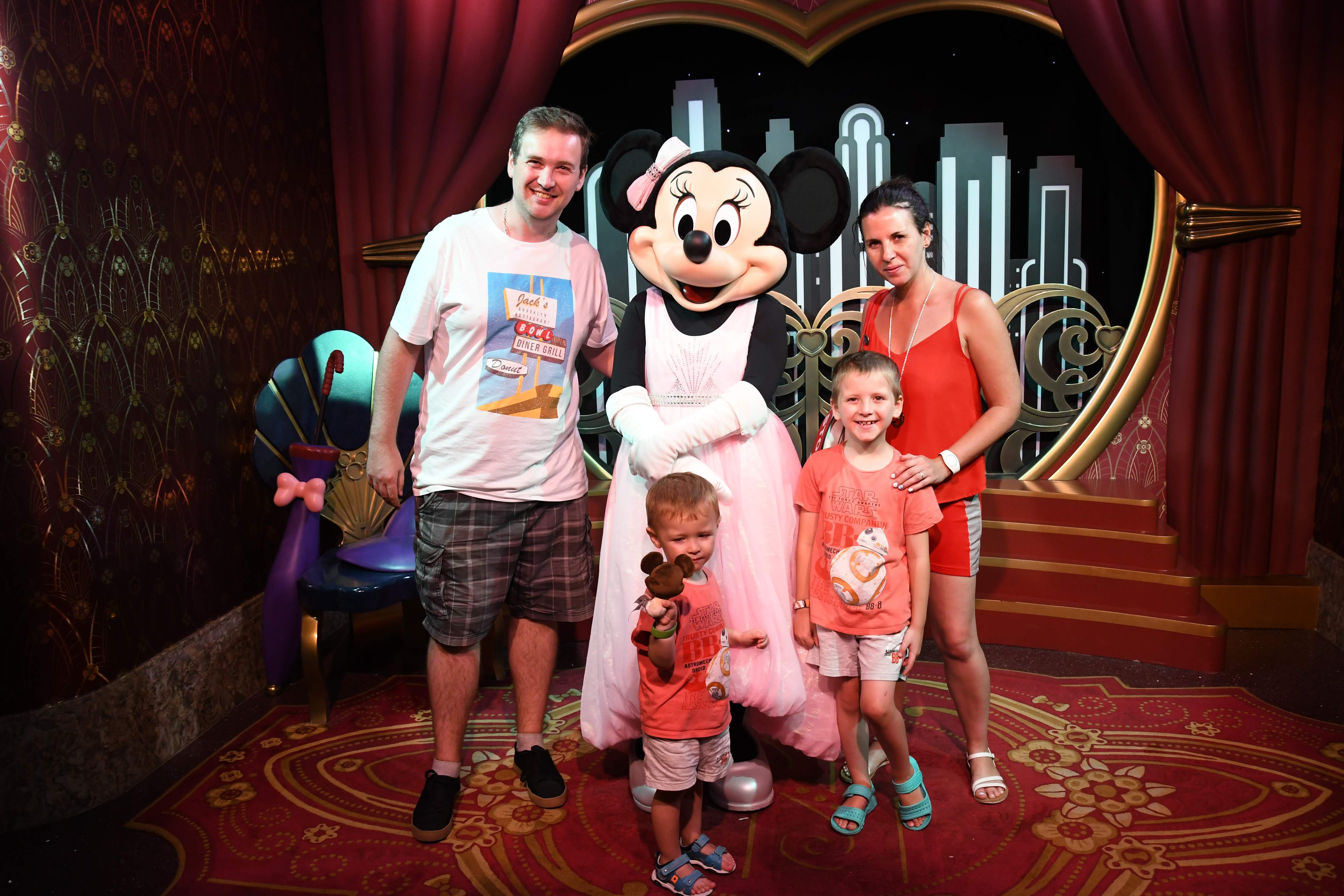 Il est désormais temps de quitter le parc. Avant de partir, nous décidons d’aller dire un dernier au revoir à Minnie et Mickey, dont le point photo n’affiche plus que 5 minutes d’attentes. Minnie est toujours aussi belle dans sa robe de soirée, et Mickey est resplendissant dans son costume de magicien.