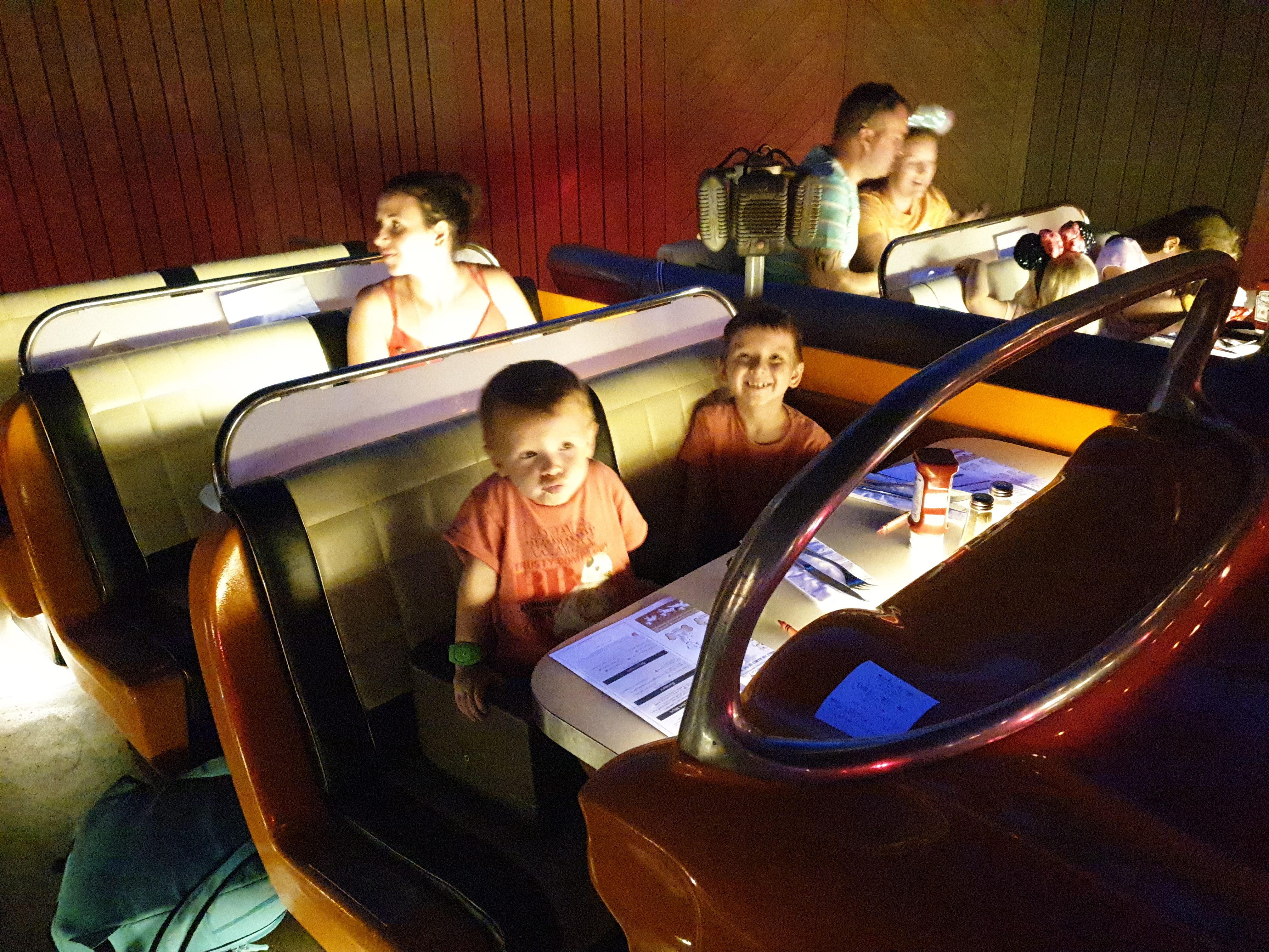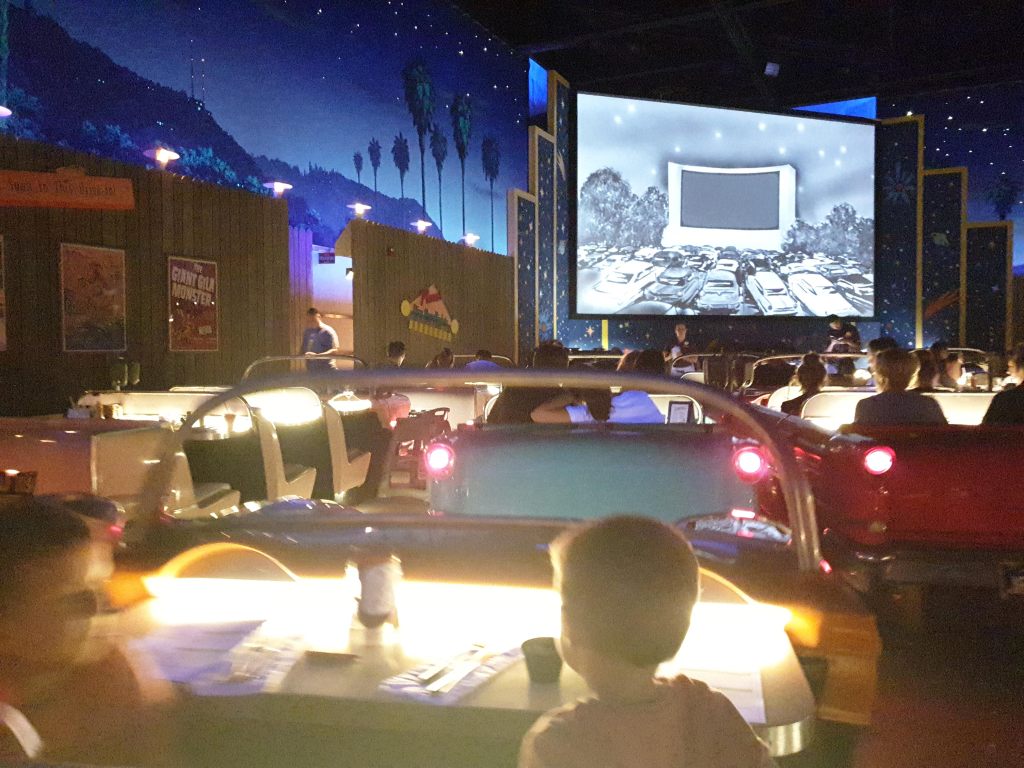 Manger à l’extérieur, tout en étant à l’intérieur. Se croire en pleine nuit, alors qu’il fait jour. Etre en 2019, mais replonger dans les années 50… C’est ça aussi, la magie de Disney World. Et c’est ce que vous propose le restaurant Sci-Fi. Un concept vraiment sympa, qui reprend l’idée des cinémas en plein air américains. Vous mangez à bord d’une voiture cabriolet, devant un écran géant qui diffuse des films kitchs à souhait.