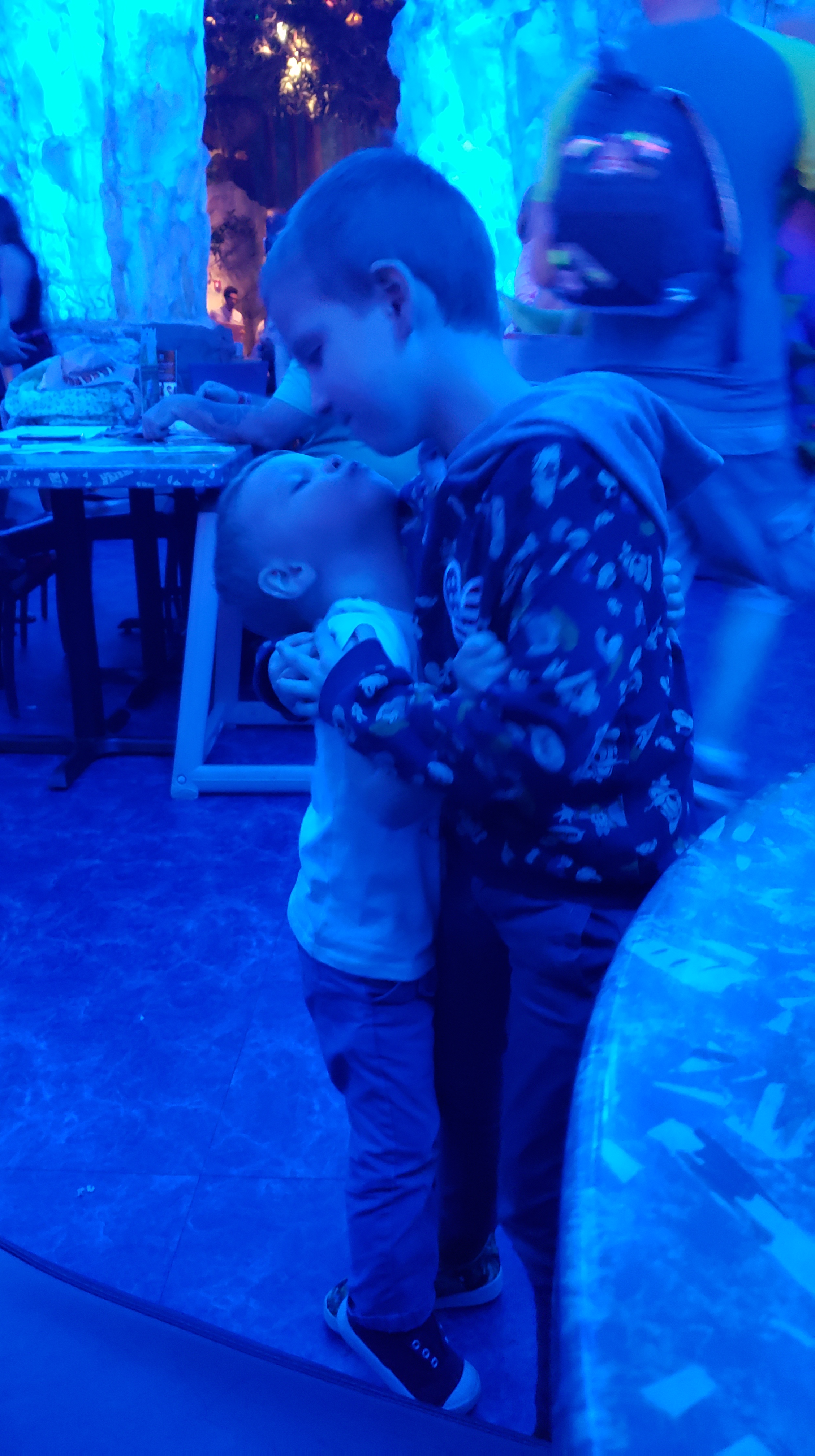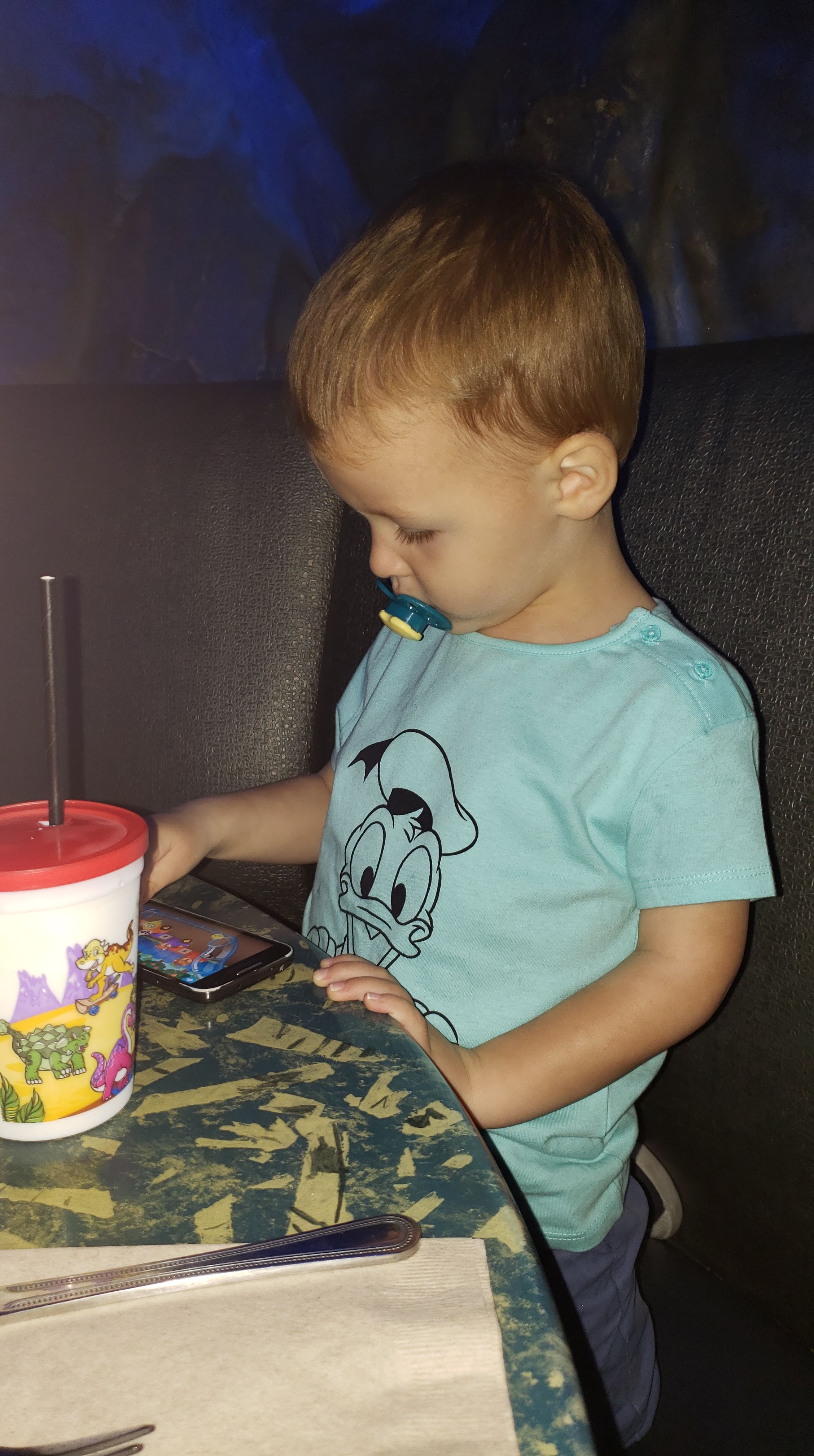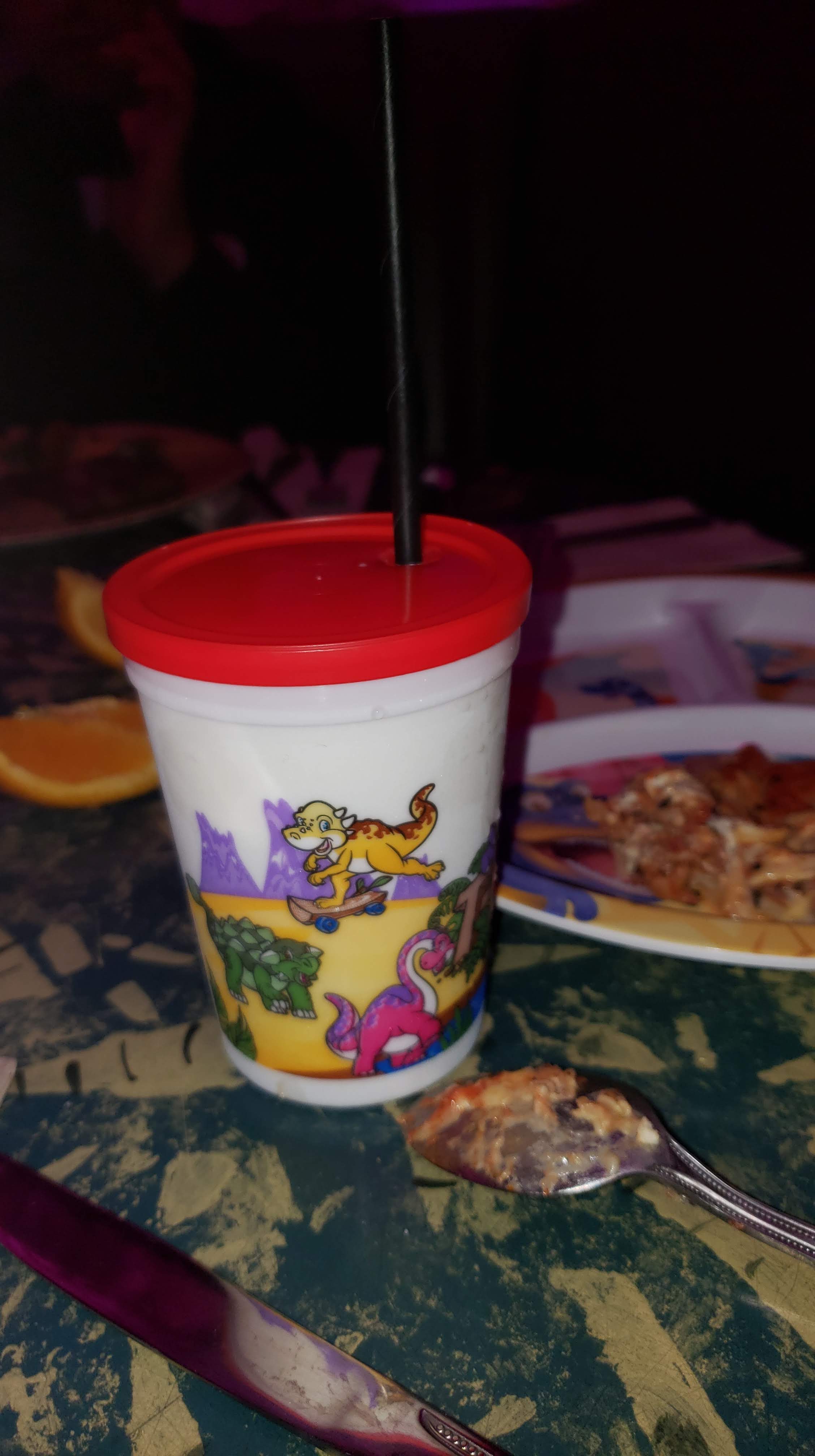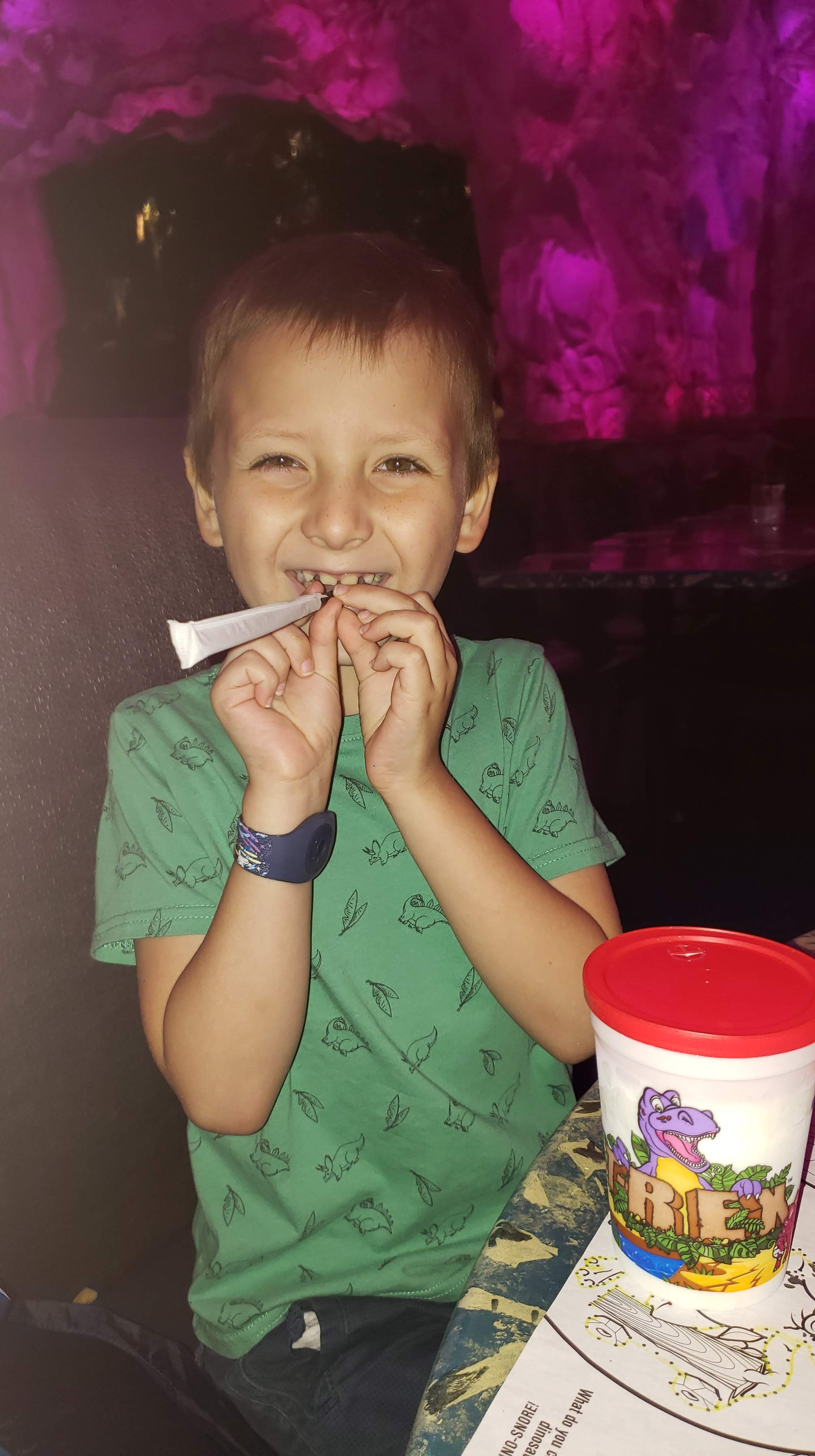 Il est déjà l’heure de quitter l’hôtel pour aller manger. Nos billets de parcs n’étant plus valides, nous avons réservé notre dernier restaurant à Disney Springs. Il s’agit du T-Rex Restaurant. Comme son nom l’indique, il nous plonge au coeur de l’ère des dinosaures. C’est beau, et impressionnant ! Après quelques minutes d’attente, notre serveur nous place dans la grotte dont les murs changent de couleur. Très sympathique, il nous raconte qu’il a passé quelques mois à Paris et qu’il adore la France. Pendant tout le repas, il fera l’effort de nous adresser quelques mots en Français. Décidément, tout est fait pour nous replonger progressivement dans la vraie vie !