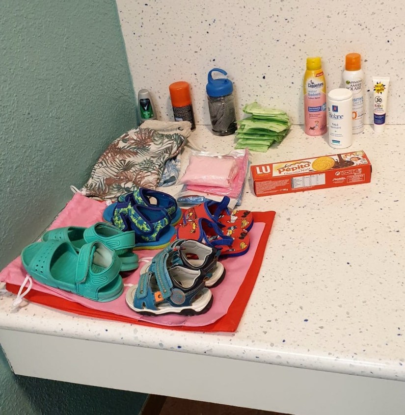 Notre matinée est consacrée aux derniers préparatifs. On vérifie que les valises sont bouclées, que rien n’a été oublié dans la chambre. On se plie aussi à la « tradition » de Walt Disney World. En quittant l’hôtel, les voyageurs laissent sur place des objets dont ils ne se servent plus. Une façon de donner une seconde vie à des produits inutilisés, et d’alléger ses bagages pour le retour ! On dépose donc des paquets de biscuits, des tongs, des serviettes de bain, et un tube de crème solaire dans la laverie de l’hôtel. D’autres voyageurs sont passés avant nous et ont eux aussi laissé quelques objets… et notamment… une poussette Mickey vendue 70$ dans la boutique de l’hôtel ! On n’hésite pas longtemps. Celle que nous avons acheté pour le séjour a souffert du voyage et des 15 jours en Floride, et celle-ci est intacte, et beaucoup plus légère pour le transport. On dépose donc notre poussette dans la laverie, et on récupère la poussette Mickey ! En plus d’être pratique pour le voyage retour, elle nous fait un super souvenir ! Les enfants récupèrent aussi un sac à dos (bien pratique aussi pour ranger nos dernières affaires) et une casquette Mickey.