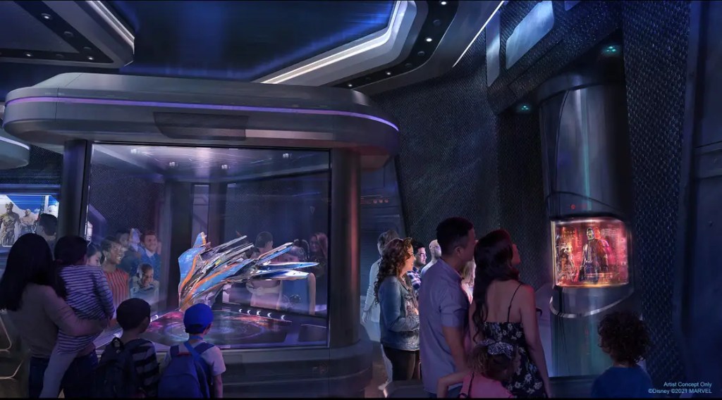 Lorsque Guardians of the Galaxy: Cosmic Rewind ouvrira ses portes à l’été 2022 à EPCOT au Walt Disney World Resort à Lake Buena Vista, en Floride, les visiteurs seront invités dans le pavillon « d’un autre monde » des merveilles de Xandar, où ils traverseront une galerie comme on le voit dans ces concept-arts. Ici, ils découvriront le peuple et la culture Xandarien, y compris leurs héros tels que les Gardiens de la Galaxie.