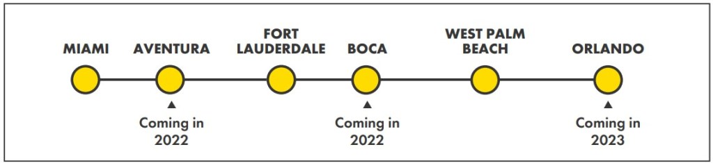 La gare d’Orlando est actuellement en construction à l’intérieur du nouvel aérogare C de l’aéroport international d’Orlando, qui a été inauguré l’année dernière. La compagnie prévoit d’ouvrir des stations supplémentaires dans le centre de congrès d’Orlando et les parcs à thème de la région à l’avenir.