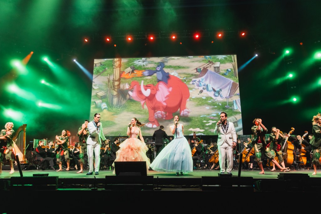 Sur scène, l’orchestre symphonique Sinfonia Pop Orchestra, dirigé par Jordan Gudefin, accompagné de chanteurs et danseurs, fait revivre les plus grands classiques Disney. Les extraits des films, projetés sur un écran géant HD, renforcent encore l’émotion.