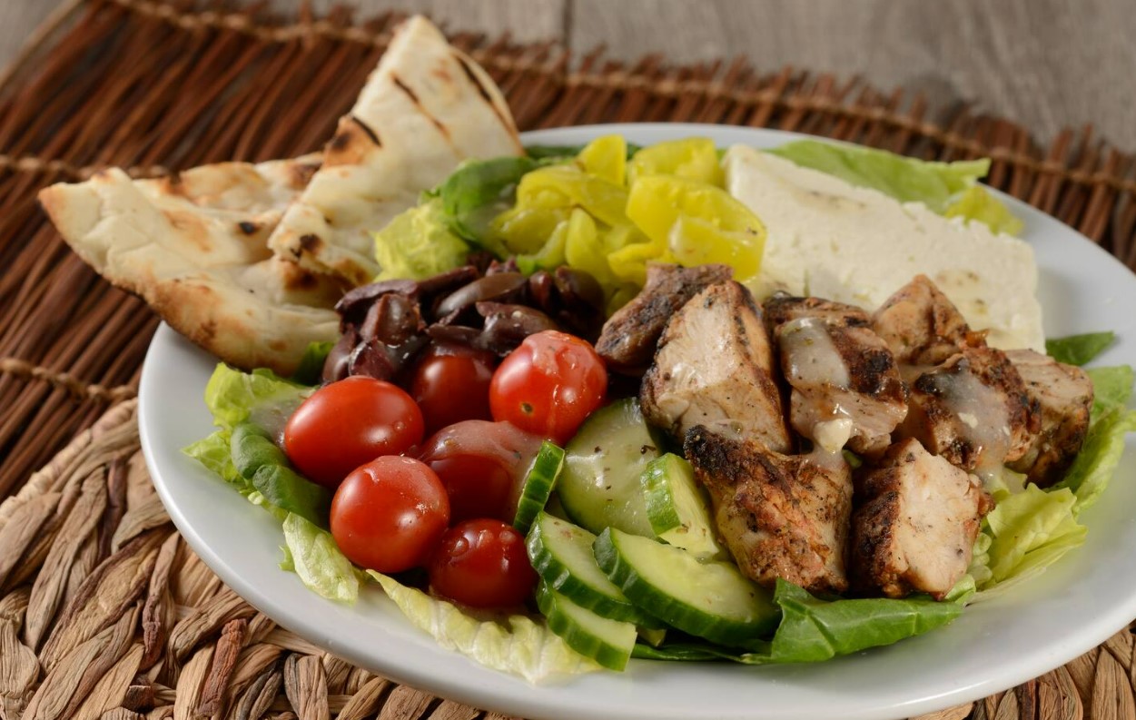 - Pain pita avec des keftas : Keftas d’agneau et de bœuf (une option végétarienne est également possible), avec une sauce Tzatziki et des frites.