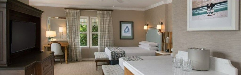 L’hôtel Disney’s Beach Club Resort dispose de chambres standard et de suites. Dans chaque chambre se trouve un réfrigérateur, une cafetière, avec des dosettes de café et des sachets de thé. Il y a plusieurs prises électriques, avec prises USB intégrées. Les chambres disposent d’une grande télévision, diffusant les horaires des parcs, la météo, d’autres infos pratiques, les chaînes de télé américaines, et des chaînes de télé Disney. Dans la salle de bain se trouvent une planche à repasser, un fer, un sèche-cheveux, ainsi qu’un coffre fort.