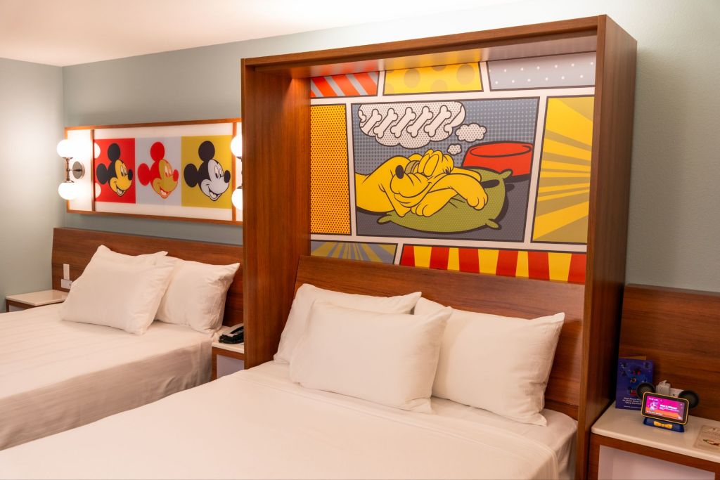 L’hôtel Pop Century dispose de chambres standard et preferred (plus proches de la réception, de la zone de restauration et des transports). Dans chaque chambre se trouve un réfrigérateur, une cafetière, avec des dosettes de café et des sachets de thé.