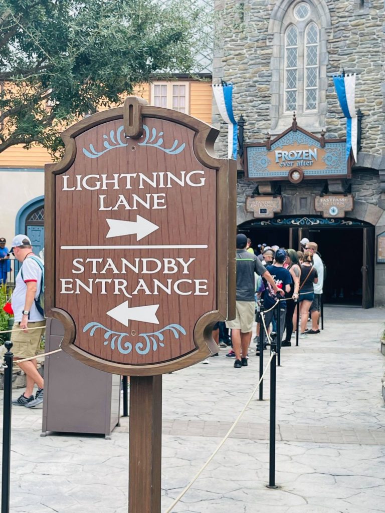 - Une file d’attente classique, appelée la Standby Line. Le temps d’attente estimé est affiché à l’entrée, ainsi que sur l’application My Disney Experience.