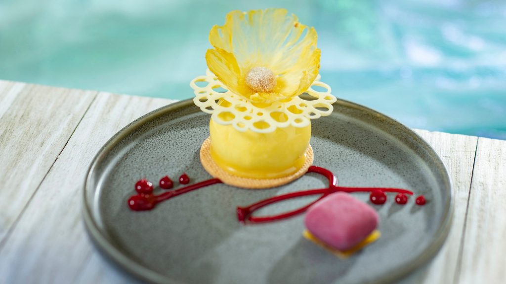 Pour finir le repas en beauté, le chef pâtissier Kristine Famer propose une sélection de desserts, tels que le classique cheesecake à la croûte d’amande et la pavlova aux baies de Floride avec crème anglaise.