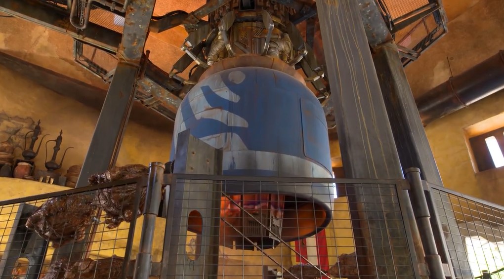 Ronto Roasters est situé au cœur du land Star Wars: Galaxy’s Edge, près du marché de Batuu. Facile à repérer grâce à son imposant grill alimenté par le moteur d’un pod-racer, ce stand s’intègre parfaitement à l’atmosphère industrielle et immersive de la planète Batuu.