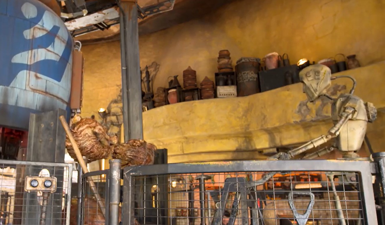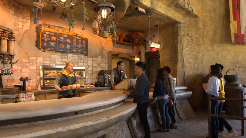 L’ambiance de Ronto Roasters est 100% Star Wars, avec son immense grill alimenté par un moteur de pod-racer et son droïde assistant qui tourne la broche. Le décor industriel, rempli de détails authentiques, donne l’impression de manger dans une véritable cantine de marché spatial. C’est une expérience immersive qui plaira autant aux fans de Star Wars qu’aux amateurs de décors originaux.