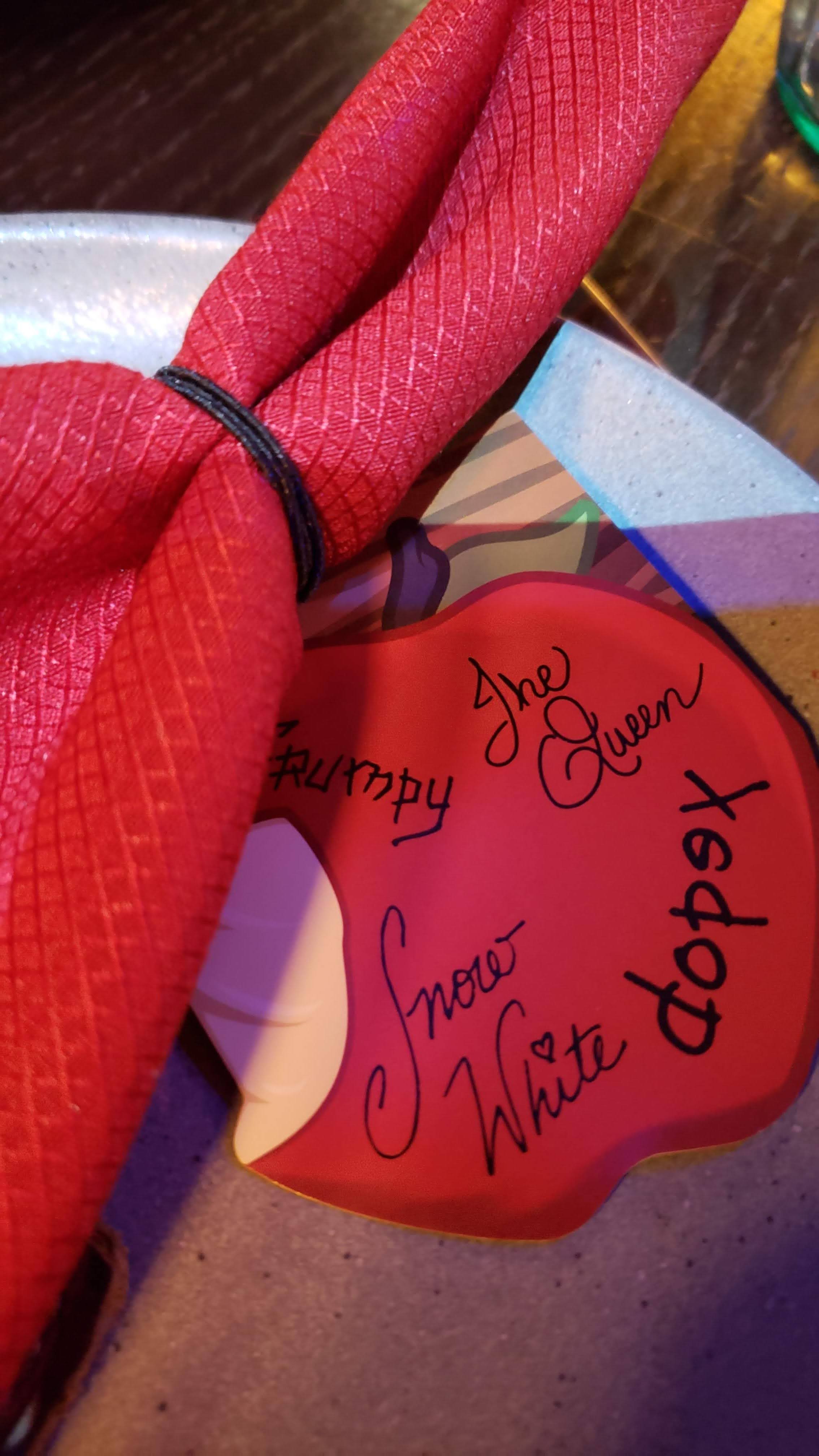 - Laissez les personnages venir à vous : l’organisation est bien rodée chez Disney, et encore plus dans les dîners avec personnages ! Ils viendront tous vous voir à table (sauf une personne, je ne vous gâche pas la surprise), et la serveuse vous apportera une carte signée par tous.