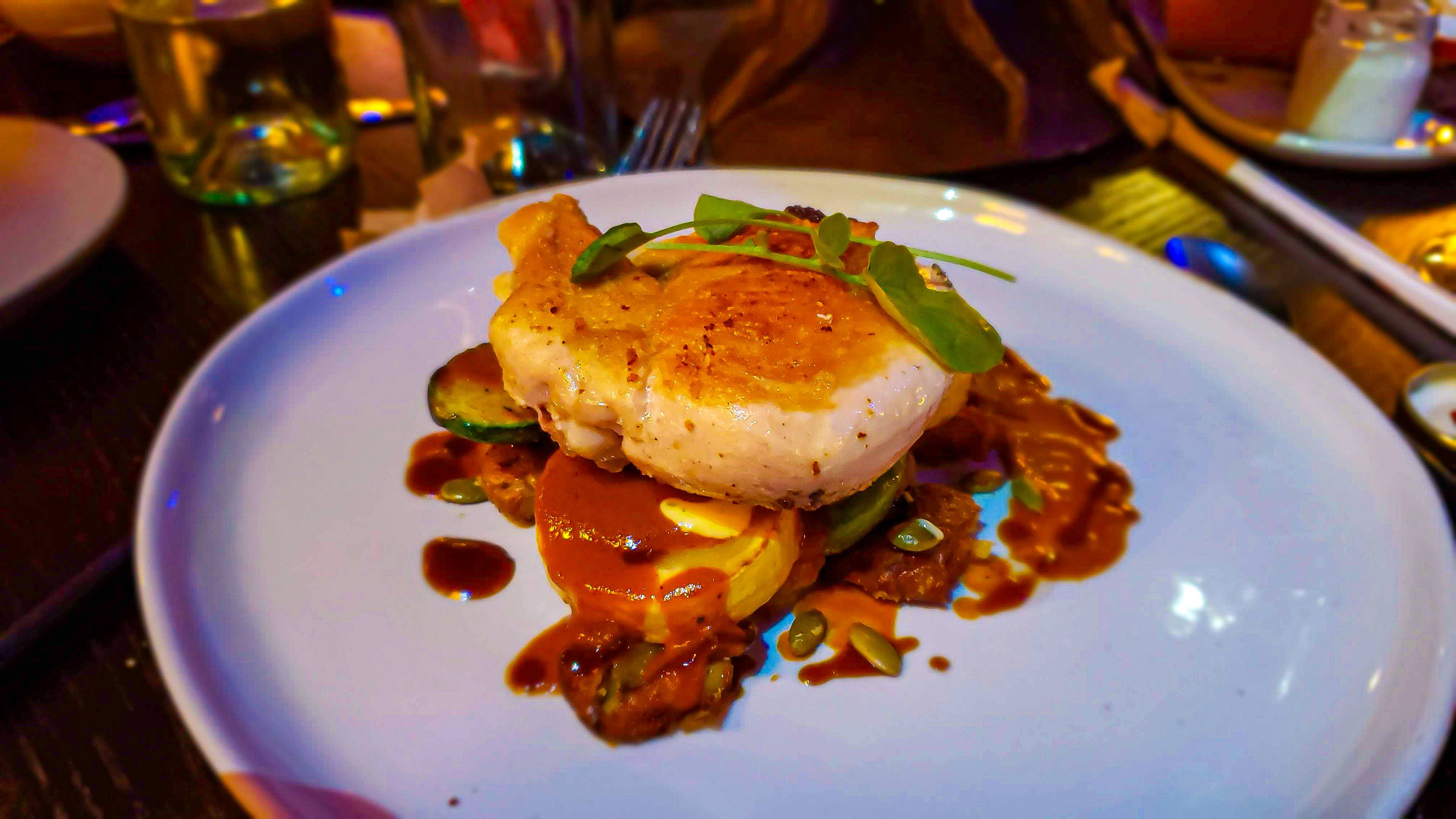 Le menu propose des plats comme des viandes grillées, des poissons, et des options végétariennes, tous présentés de manière originale pour s’accorder à l’univers de Blanche-Neige et les Sept Nains. Les desserts sont également inspirés par l’histoire, avec des créations uniques comme la pomme empoisonnée en version sucrée.