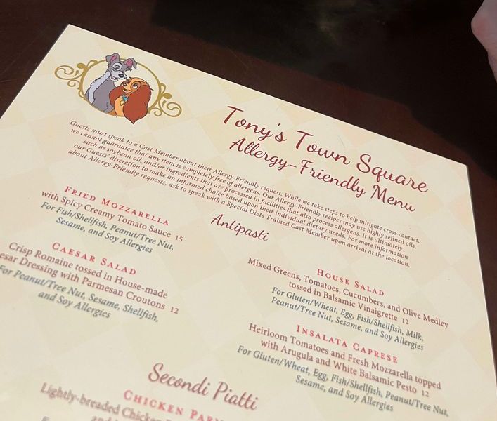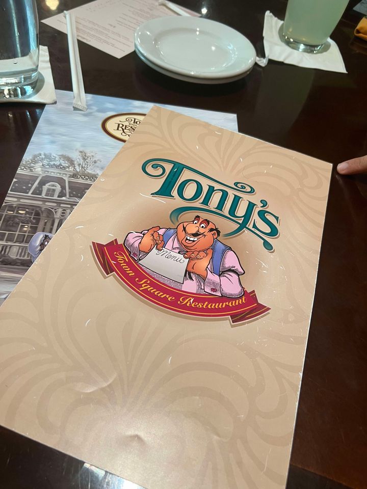 Le Tony’s Town Square Restaurant représente le restaurant “Chez Tony” du film La Belle et le Clochard. Il s’agit d’un restaurant italien aux allures romantiques. Il est thématisé par de nombreux tableaux illustrant des scènes du film, une magnifique fontaine centrale au centre de laquelle trône les 2 protagonistes du film, ainsi que de nombreuses autres
