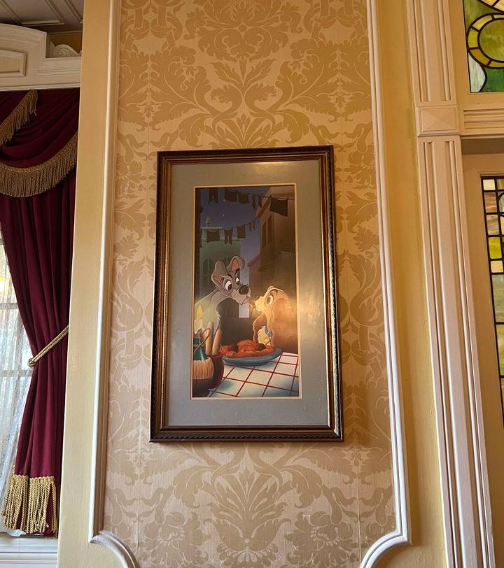 - Ambiance : Vous êtes plongés dans l’ambiance romantique du film La Belle et le Clochard, plus particulièrement de la scène iconique où les 2 protagonistes partagent un plat de spaghettis dans le petit restaurant italien “Chez Tony”.
